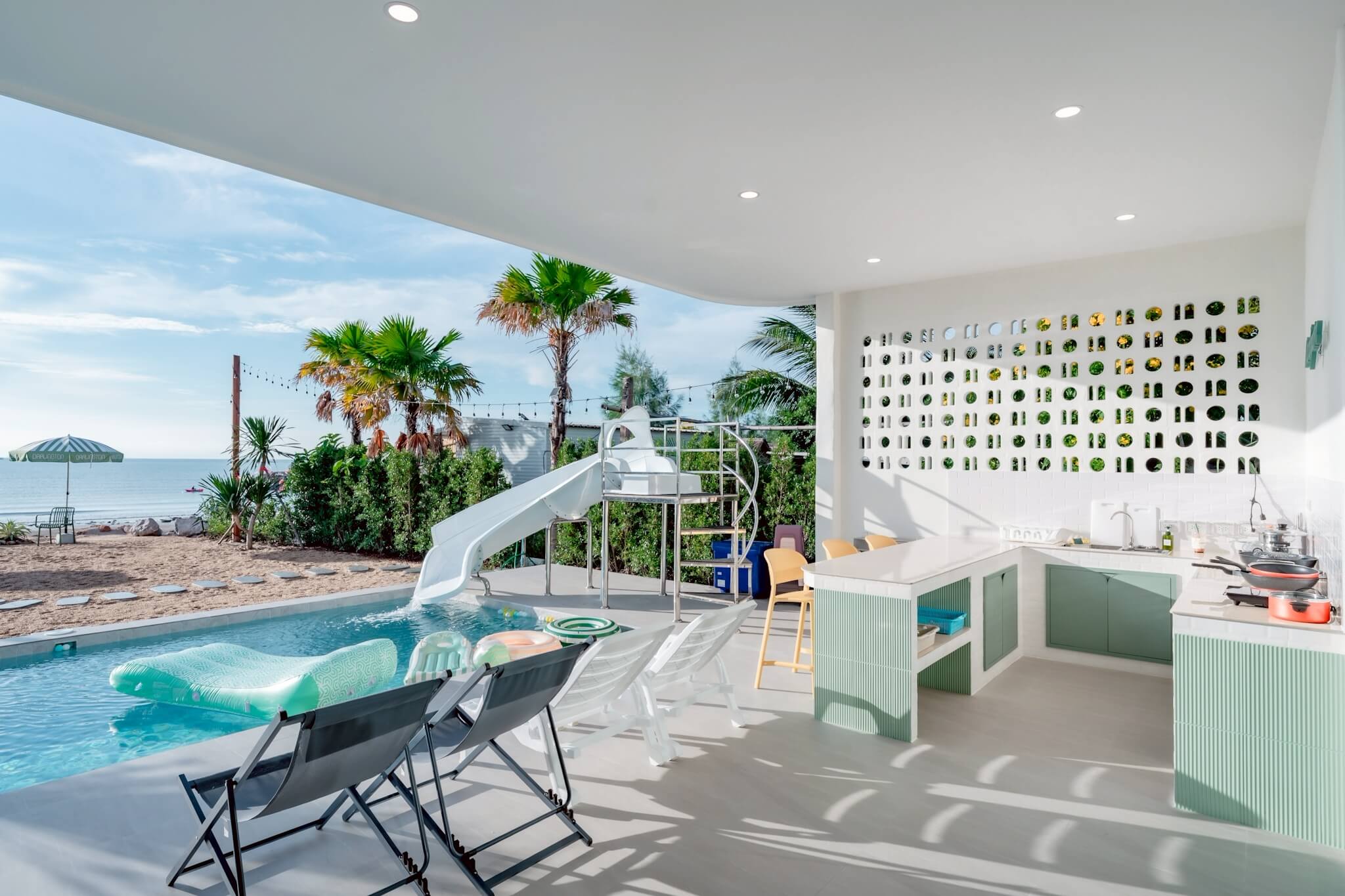 - อุปกรณ์ทำครัวครบครัน เตาไฟฟ้า ตู้เย็น ไมโครเวฟ กาต้มน้ำร้อน หม้อหุงข้าว เครื่องปิ้งขนมปัง จาน ชาม ช้อน ส้อม แก้วน้ำ แก้วไวน์ ที่เปิดไวน์ แก้วกาแฟ มีด เขียง ครก หม้อ กระทะ ถังน้ำแข็ง / แช่ไวน์พร้อมที่คีบ