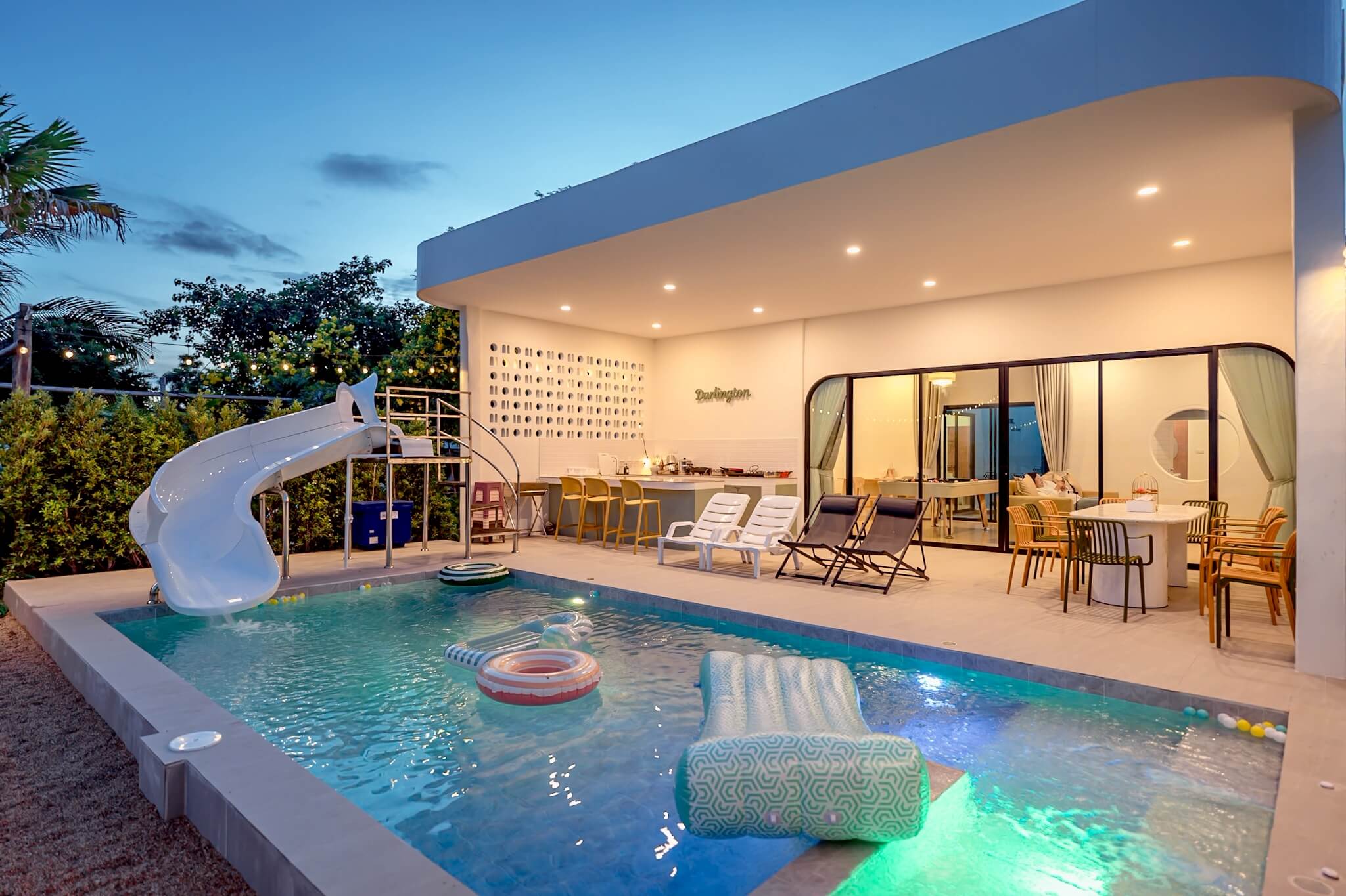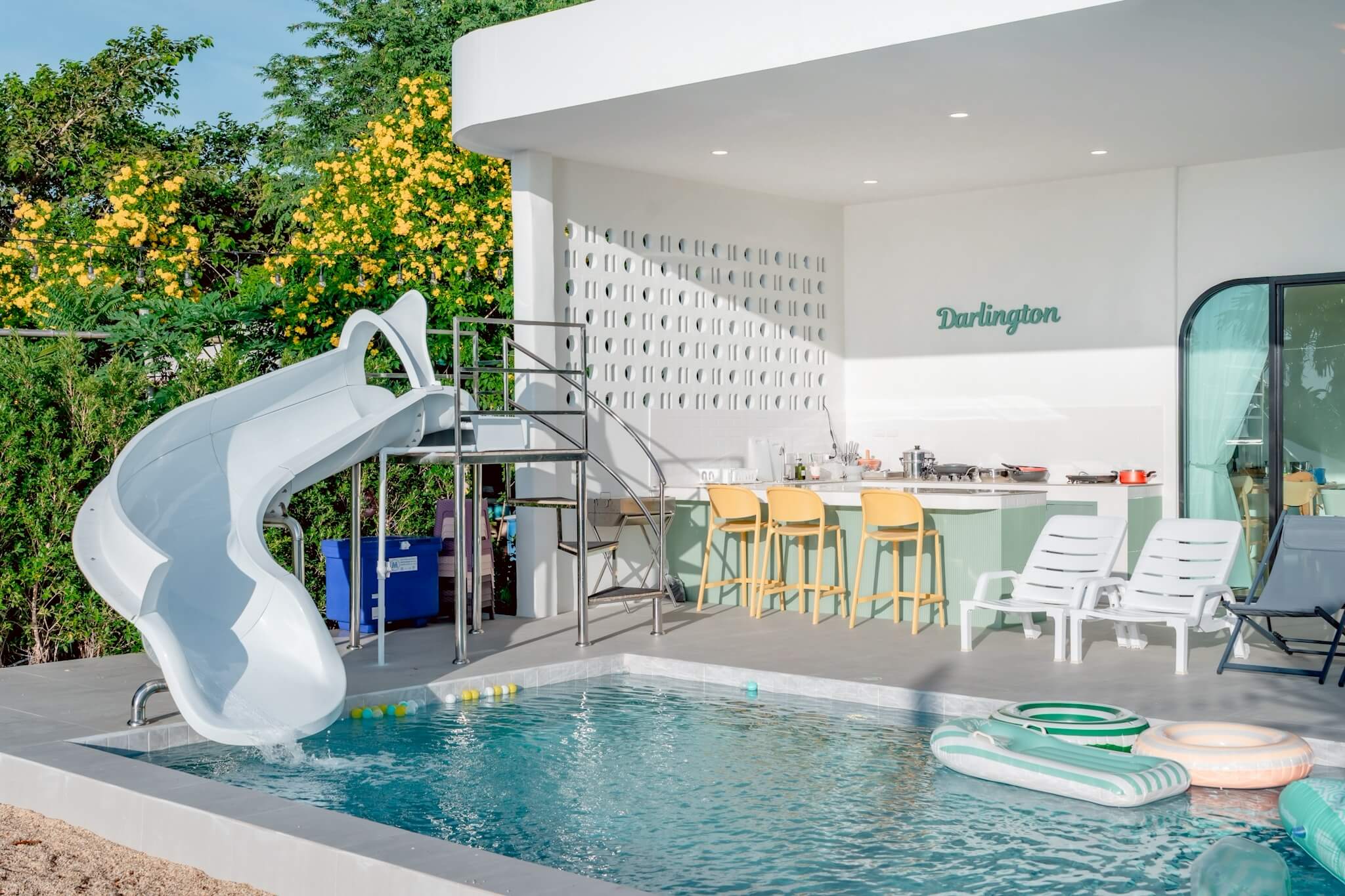 - สระว่ายน้ำระบบเกลือ3.5 x 7 เมตร พร้อมสระเด็ก หัวพ่นจากุชชี่ ไฟเปลี่ยนสีแบบ Auto
