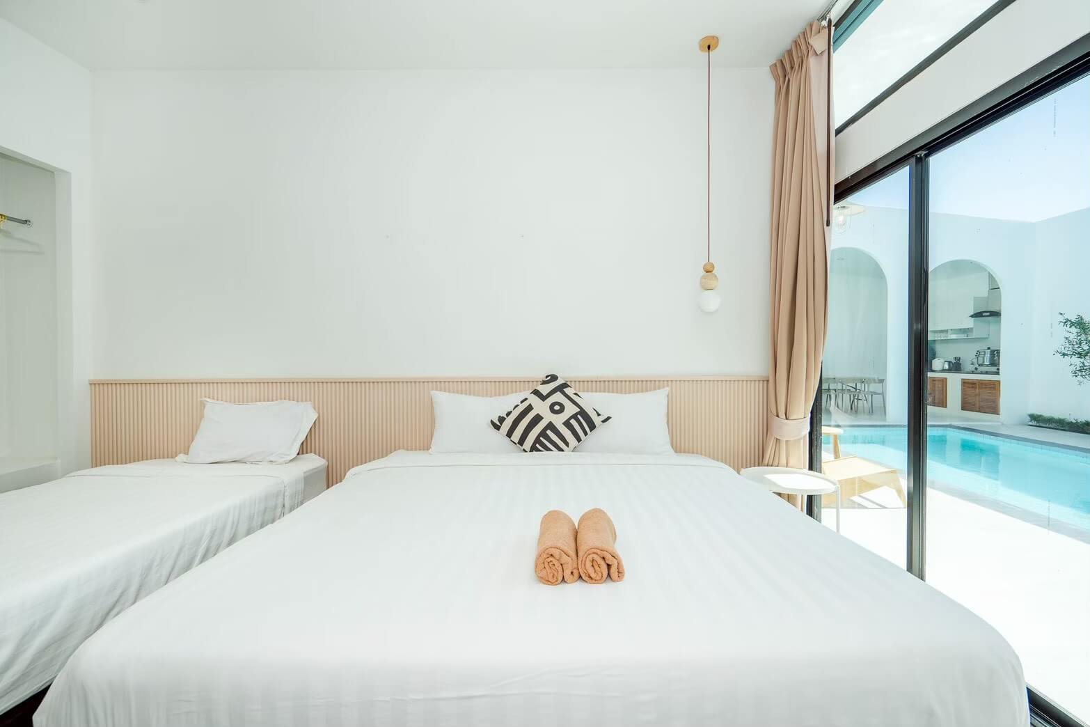 - ห้องนอนที่1 เตียง 6 ฟุต จำนวน 2 เตียง และ เตียง 2 ชั้น 1 เตียง