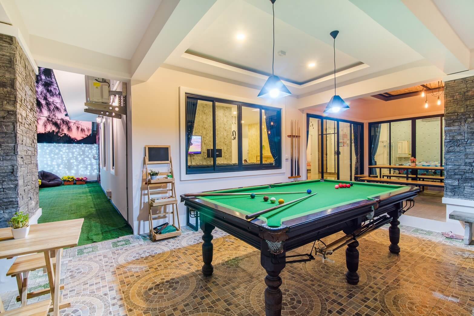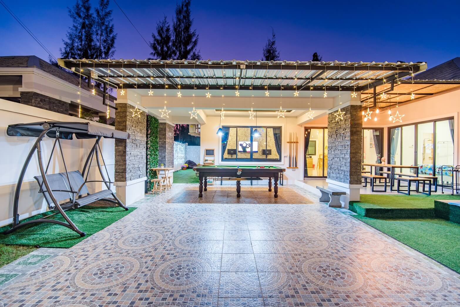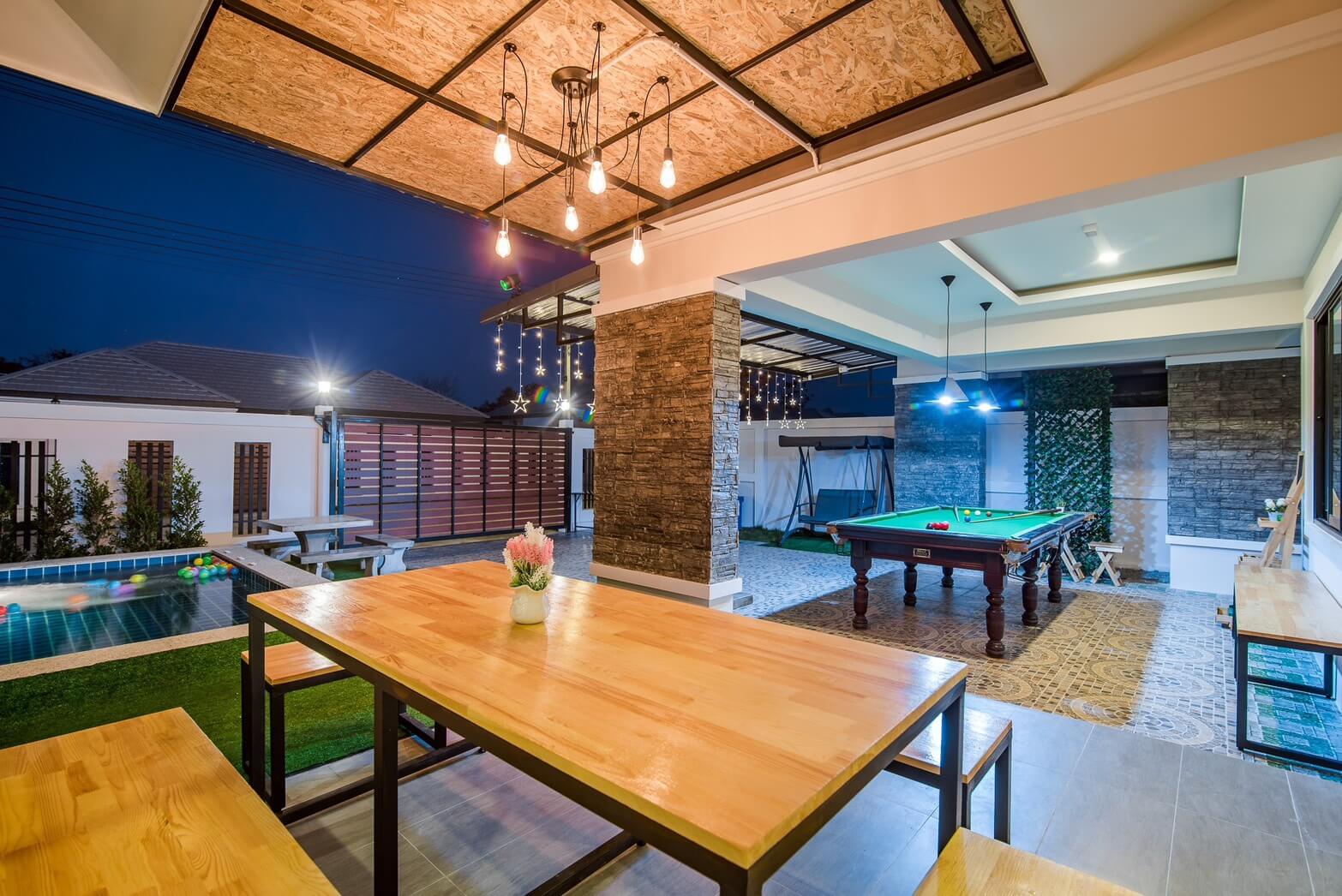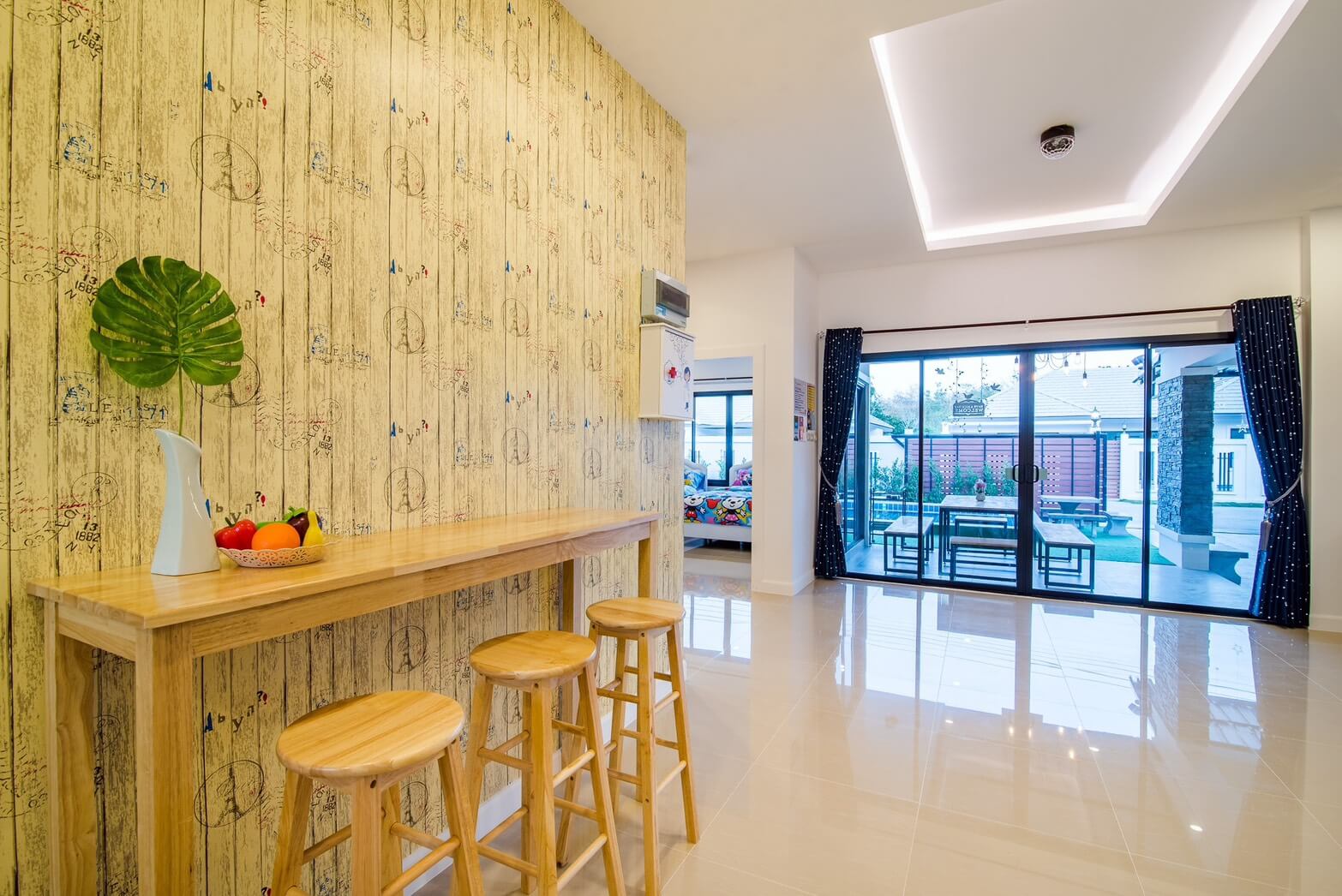- ครัวไทย (นอก) มีพื้นที่ทำกับข้าวขนาดกว้าง อุปกรณ์ทำครัวครบ โต๊ะ เตาแก๊ส กะทะ เตาหมูกะทะ หม้อต้ม ไมโครเวฟ กาน้ำร้อน เครื่องปิ้งขนมปัง ช้อนส้อม ถ้วย ชาม จาน แก้ว ตู้เย็น,กระติกน้ำร้อน,หม้อหุงข้าว,ถังน้ำแข็ง