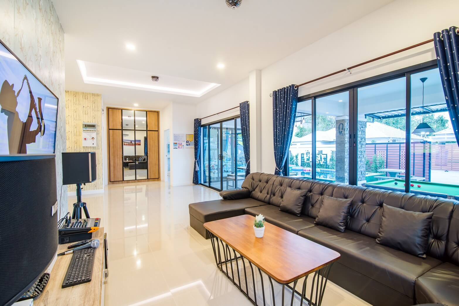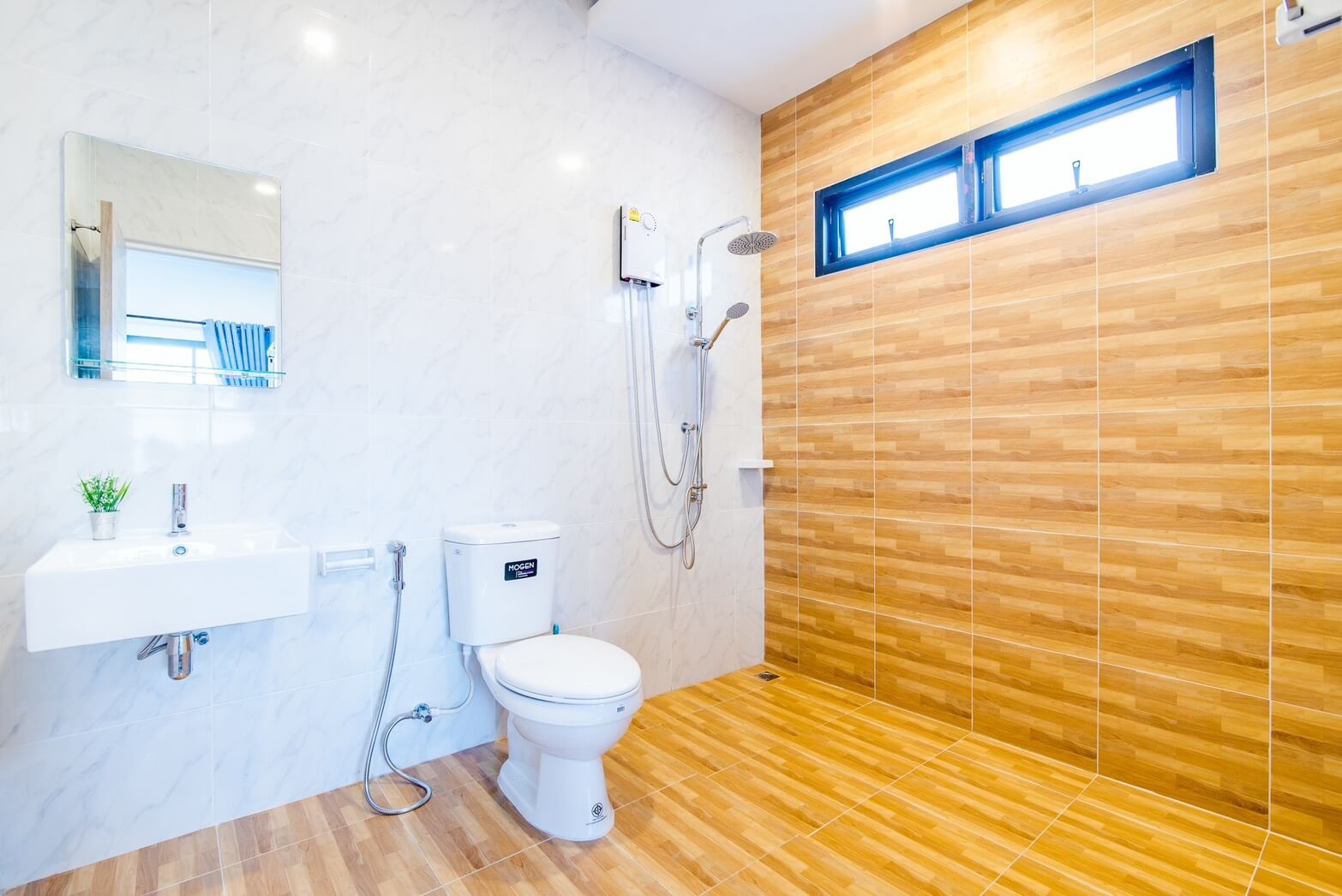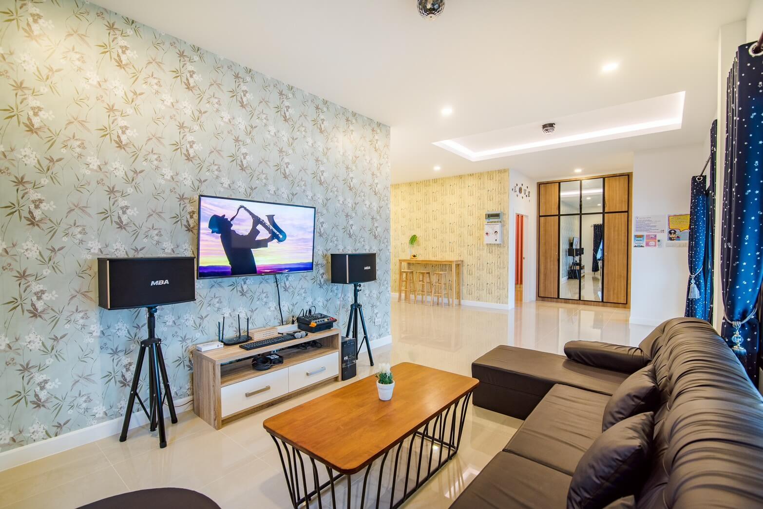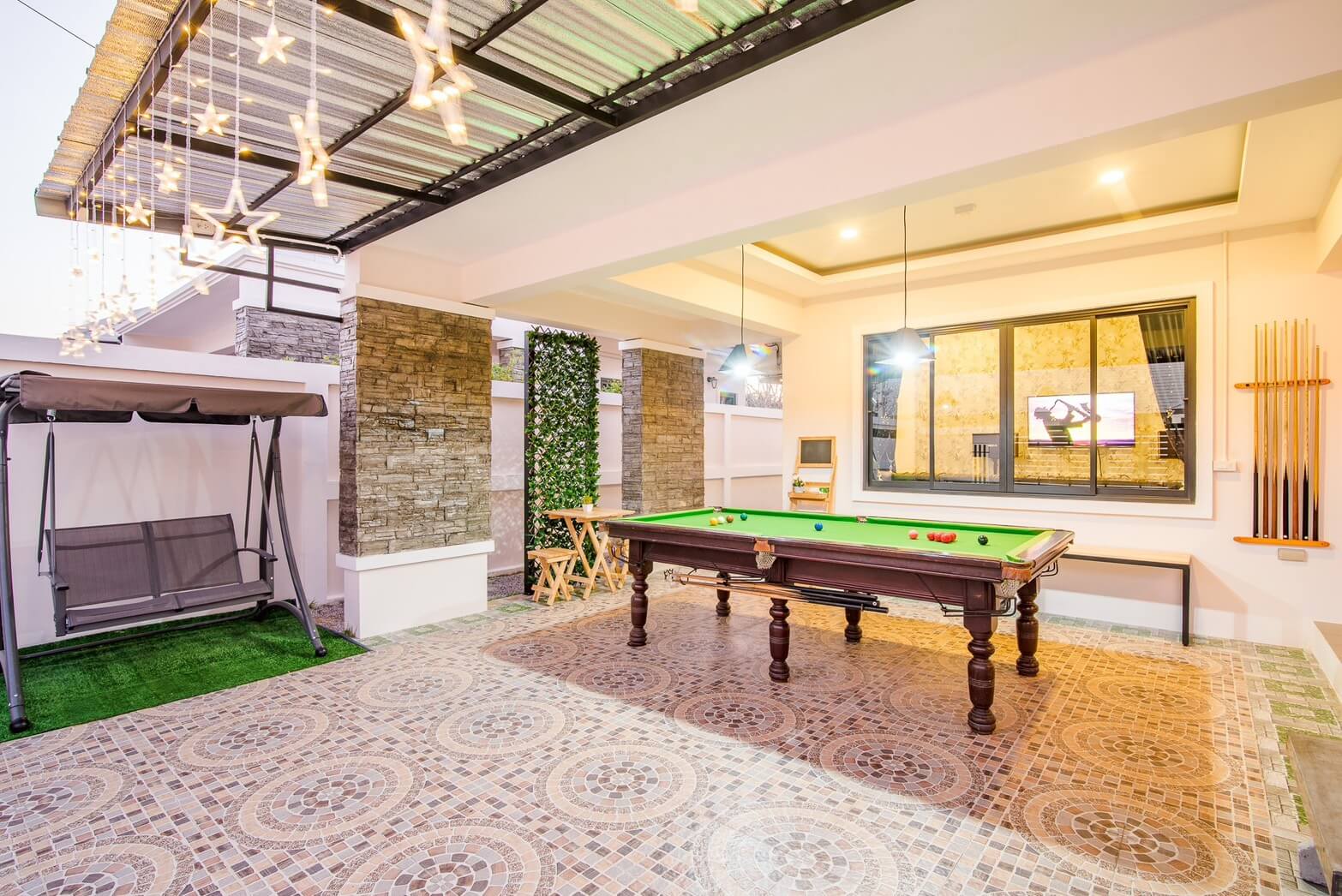 - ครัวไทย (นอก) มีพื้นที่ทำกับข้าวขนาดกว้าง อุปกรณ์ทำครัวครบ โต๊ะ เตาแก๊ส กะทะ เตาหมูกะทะ หม้อต้ม ไมโครเวฟ กาน้ำร้อน เครื่องปิ้งขนมปัง ช้อนส้อม ถ้วย ชาม จาน แก้ว ตู้เย็น,กระติกน้ำร้อน,หม้อหุงข้าว,ถังน้ำแข็ง
