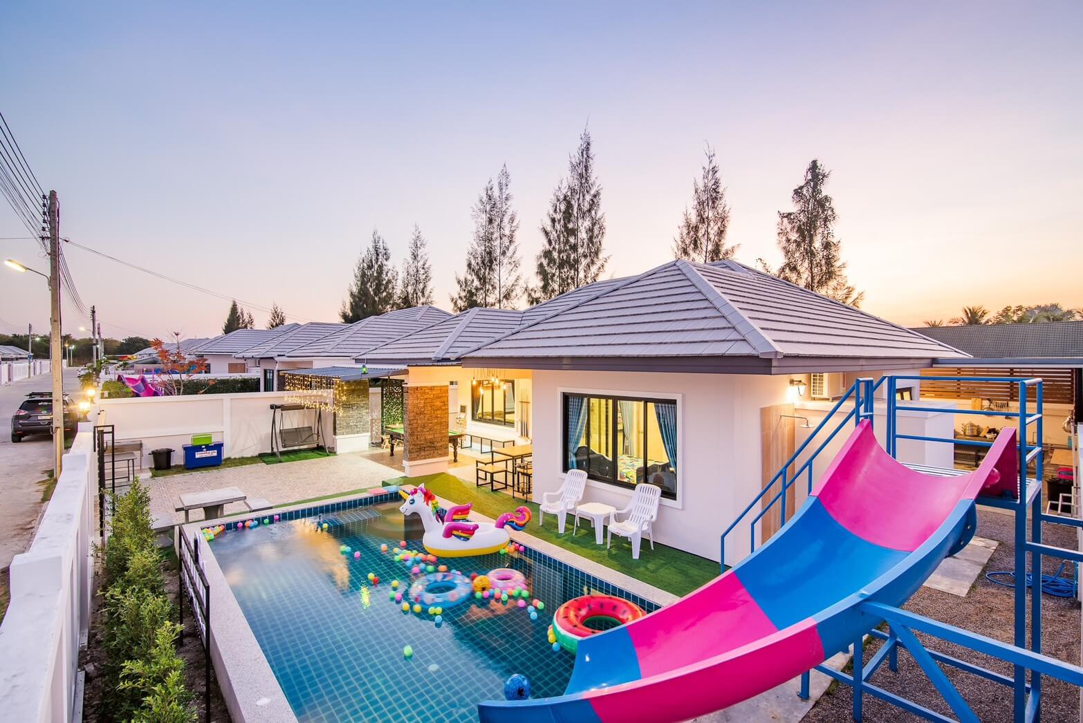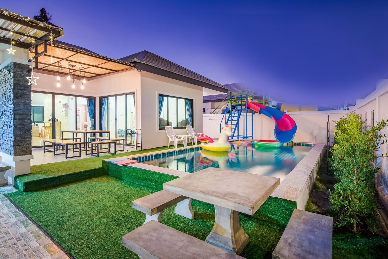 - สระว่ายน้ำส่วนตัว 4x8 m พร้อมสระสปานวดตัว พร้อมสไลด์เดอร์ ยาว 5 m
