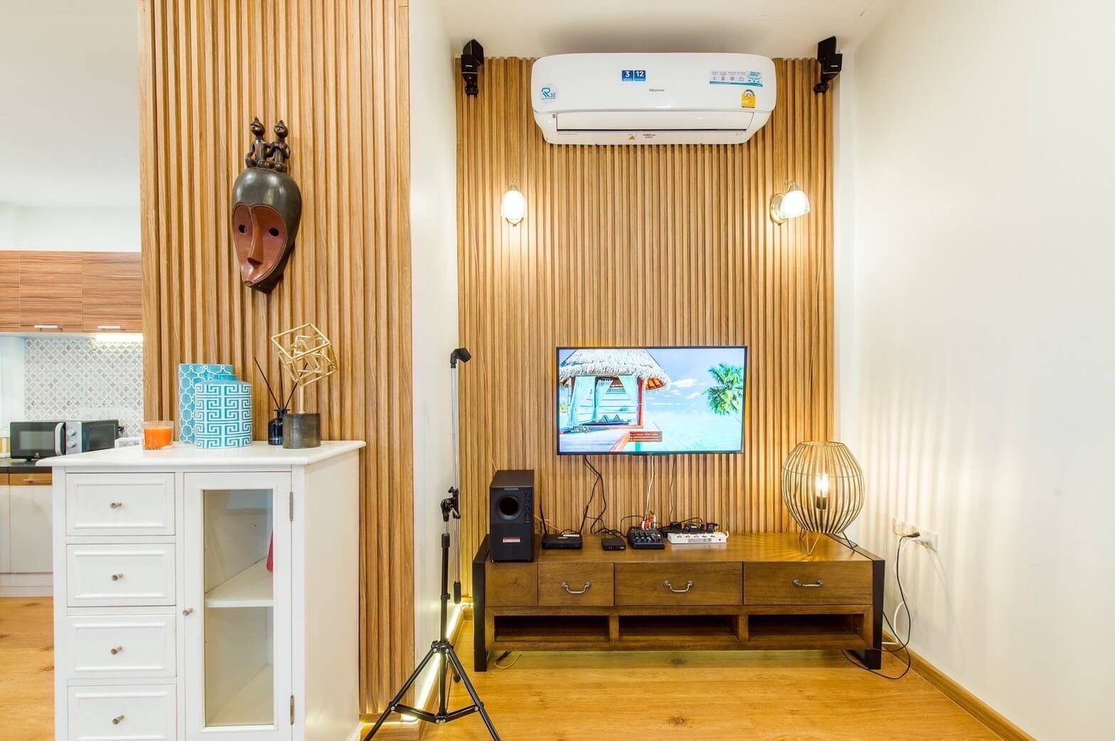 - เครื่องปรับอากาศ ในห้องนั่งเล่น และห้องพักทุกห้อง