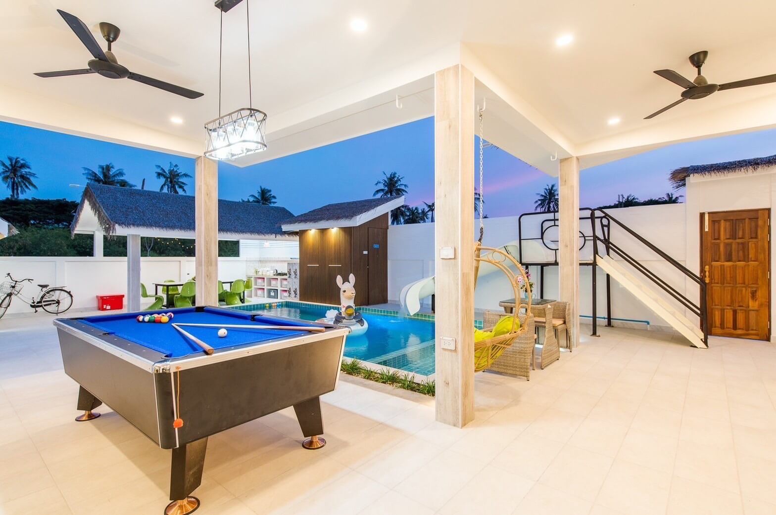 - สระว่ายน้ำส่วนตัวขนาด 3.5x7.5 ลึก 1.30 และสระเด็กความลึก 70cm.