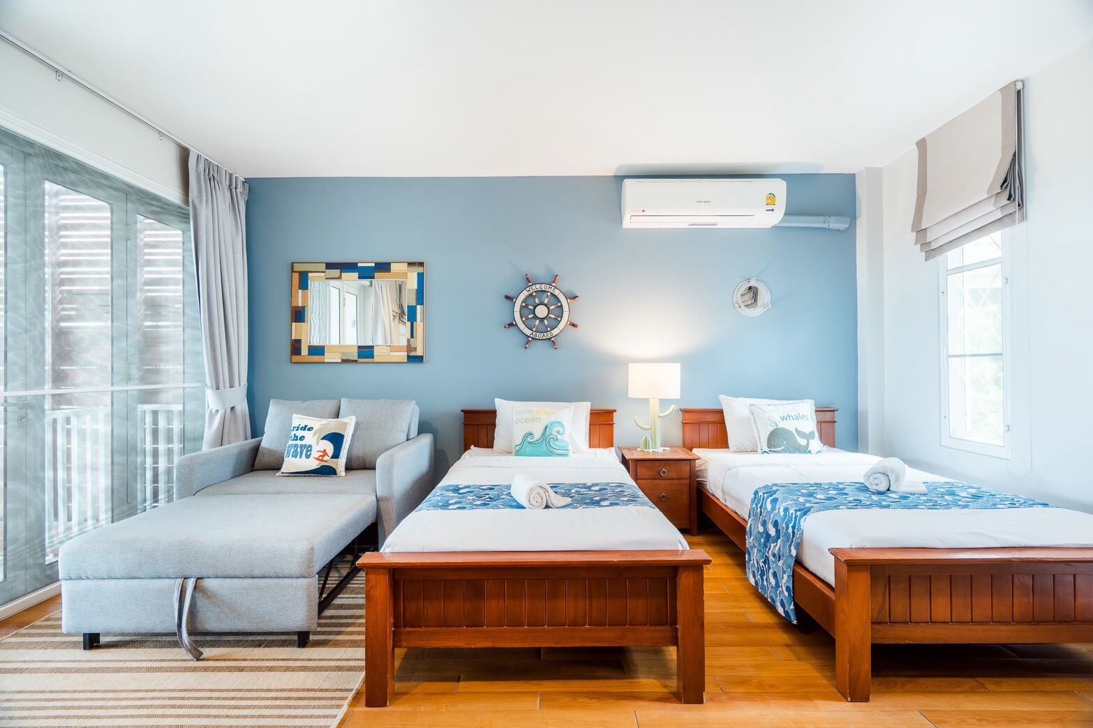 ห้อง 2 เตียง 3.5 ฟุต 2 เตียง และ Sofa Bed ห้องน้ำส่วนตัว