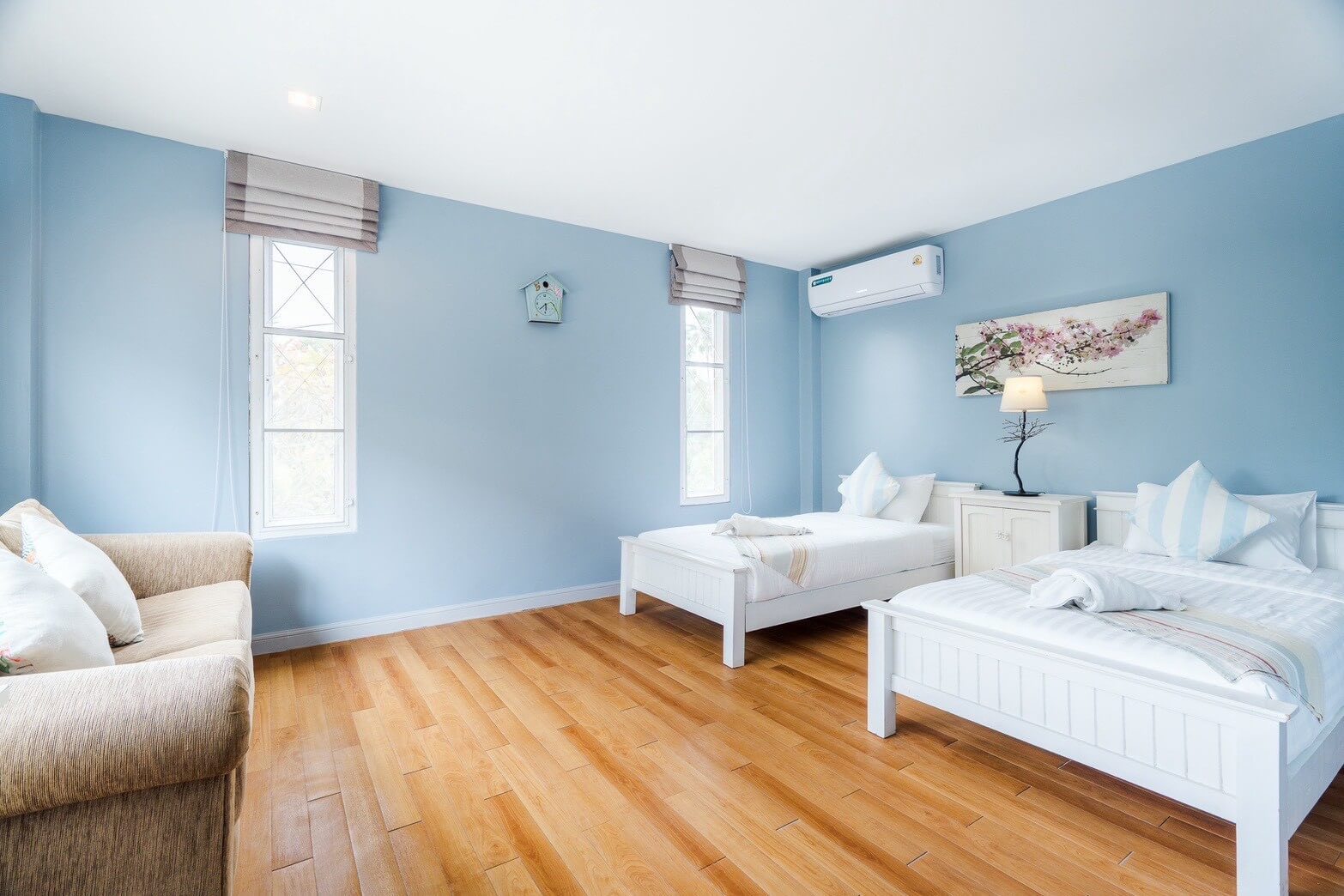 ห้อง 2 เตียง 3.5 ฟุต 2 เตียง และ Sofa Bed ห้องน้ำส่วนตัว